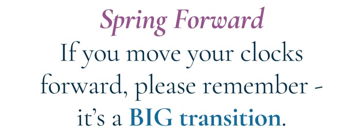 I watched the time yesterday, thinking about the added hour every time I looked. It's a big change. If you are parenting, I offer a choice of these two suggestions: